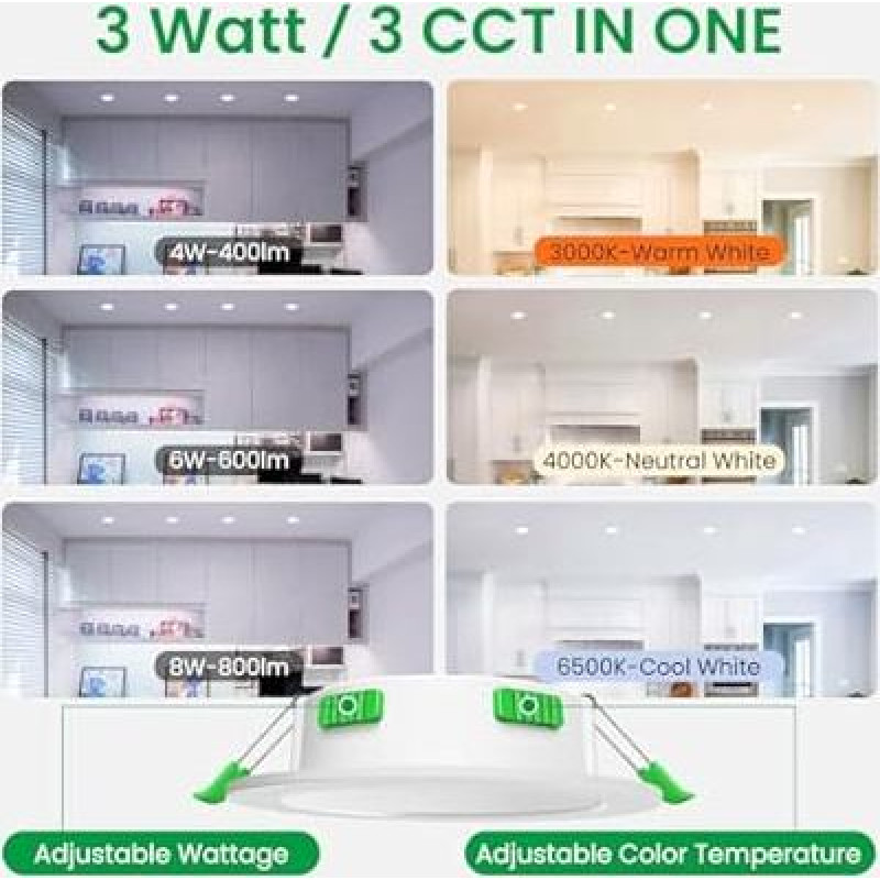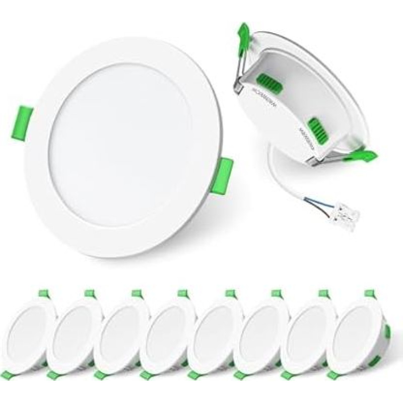 3 adjustable wattages and colour temperatures: this LED recessed spotlight offers a variety of adjustment options. With 3 wattages (4W-400LM/6W-600LM/8W-800LM) and 3 colour temperatures (3000K/4000K/6500K), you can individually choose the ideal light for any situation. Two light switches allow easy adjustment for optimal lighting. Ultra flat and dimmable: ALUSSO LIGHTING spots ceiling light with only 29 mm installation depth, ideal for decorating ceilings where the height distance is limited. The ultra-flat design blends seamlessly into your ceiling, makes the room look more tidy and complements different decoration styles. LED ceiling spots are also compatible with most trailing edge dimmers to achieve a dimming capacity of 10% to 100% (dimmer not included). Versatile application with IP44 certification: the integrated LED ceiling light offers 3 colour temperatures to create the perfect atmosphere for any occasion, whether in the dining room, living room, bedroom or in the office. With an IP44 certification, our recessed lights are even suitable for use in damp rooms such as kitchens and bathrooms. The wide beam angle of 120 degrees ensures large and even lighting even in dark corners. Durable and energy-saving: our LED ceiling lights with high efficiency chips and energy efficiency class D are durable and energy-saving. The consumption of 8 W corresponds to an 80 W halogen lamp. Compared to conventional halogen lights, our LED recessed spotlights can save more than 90% on electricity costs. With an operating life of up to 30,000 hours and the adjustable wattage function, you save not only energy, but also money - ideal for different rooms. Easy installation: LED recessed spotlight 68 mm without transformer with only 29 mm installation depth, Aluso ultra slim recessed lights, diameter 85 mm, hole size diameter 68-78 mm, cable length 15 cm, terminal blocks included. LED ceiling spotlights dimmable 230 V with integrated transformer, directly connected to 230 V, no transformers or accessories required. LED recessed spots can be easily mounted in minutes, even if you are a beginner. › See more product details