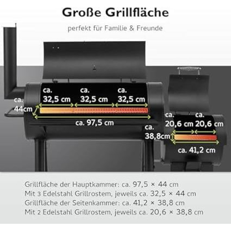 Dimensions when assembled (W x D x H): 171 x 78.5 x 151 cm grill surface of main chamber: approximately 97.5 x 44 cm (3 pieces The Milwaukee tepro Charcoal Smoker has a very large barbecue area and is perfect for indirect Cooking surface: approximately 97.5 x 44 cm › See more product details