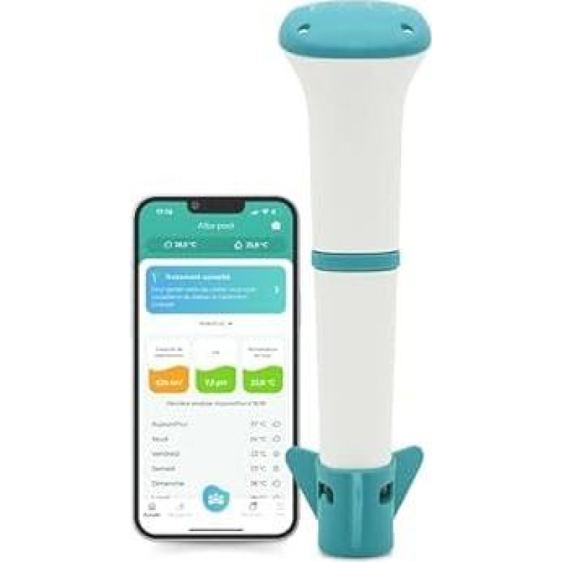 Analysis of your pool or spa water in real time. iopool advises you on precise treatments to continuously maintain clear and healthy water. Suitable for swimming pools and spas with chlorine, bromine or oxygen treatment. GUIDED CARE SYSTEM iopool guides you through all stages of the maintenance process to ensure crystal clear and healthy water for the family. You can also receive custom notifications/notifications depending on what actions you want to take. 10 meters long range. Bluetooth technology, perfect for your pool or spa in the garden. 3 sensors (temperature, pH value and disinfection potential -ORP). The first solution that really accompanies you from A to Z in pool care. Optionally, you can add a Wi-Fi module. App - Track the evolution of your water over time thanks to the history. Share the iopool app with your neighbor when you are on holiday! Box contents: Eco start probe + unlimited and full access to the mobile app for life The EcO should always be immersed in water. Prolonged air load can damage the sensors. Not suitable for salt treated pools/spas. For this type of treatment, please refer to EcO Start Salt + Connect. The EcO must be stored accordingly (according to the instructions of the application) when the water temperature is below 15 degrees Celsius. Replace the battery Activity tracking via app! Show More › See more product details