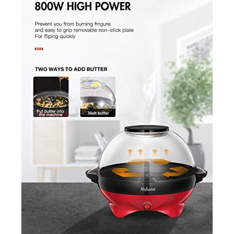 Yabano Popcorn Maker for Home, Popcorn Maker Machine with Sugar & Oil, Removable Heating Surface, 5 L Popcorn Popper, Non-Stick Coating, Large Lid as Serving Bowl, Space Saving Storage