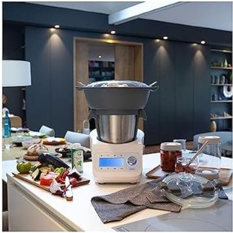 30 Functions With more than 30 functions, the robot can boil, steam, simmer, make sauces, chop, beat, grind, emulsify, knead, mix, mix, crush, grate, weigh, etc. Powerful and precise food processor: the robot has 12 power levels including pulse function to mix your preparations gently or energetically. COMES WITH A BOOK OF 100 RECIPES Find new recipe ideas and enjoy a book to help you prepare your dishes. Manual Programming Be your own chef and let your creativity speak by putting the robot into manual mode to design your recipes the way you like. Set temperature, speed and cooking time via the LCD display SAFETY: To avoid incidents, the Super Cooker has a safety lock system and stops automatically when cooking your dish is finished. › See more product details