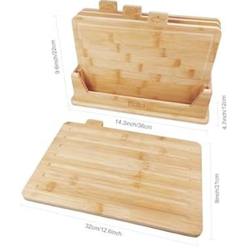 Made from 100% natural bamboo, providing a sustainable and environmentally friendly choice for your kitchen. Hand wash only, easy to maintain and keep clean for daily use. Adds a touch of elegance and functionality to your kitchen decor. Contains special boards for bread, fish, meat and vegetables to prevent cross contamination. Board size: 320 x 220 x 10 mm › See more product details; Product description Brighten up your kitchen with our high quality bamboo chopping board set. Revolutionize your cooking experience with this set of 4 eco friendly bamboo cutting boards carefully crafted to meet all your culinary needs. Designed for bread, fish, meat and vegetables, each board ensures hygiene and organization in your kitchen: bread board: with a smooth, grooved surface, the bread board effortlessly catches crumbs while providing a gentle surface for cutting your favorite breads. Fish Board:With a distinctive fish engraving, the smooth surface of this board is perfect for filleting and preparing fish while preventing cross contamination. Meat Board: A sturdy and durable board with juice groove to catch excess liquids, making it ideal for cutting and preparing different types of meat without causing a mess. VEGETABLE BOARD A special board for chopping, slicing and dicing all your vegetables, keeping them fresh and free from flavors of other ingredients. Made from 100% natural bamboo, these boards are not only stylish and sustainable, but also resistant to knife marks and easy to clean. Upgrade your kitchen with this versatile and practical bamboo chopping board set and enjoy a safer and more organized cooking experience.; Product description Brighten up your kitchen with our high quality bamboo chopping board set. Revolutionize your cooking experience with this set of 4 eco friendly bamboo cutting boards carefully crafted to meet all your culinary needs. Designed for bread, fish, meat and vegetables, each board ensures hygiene and organization in your kitchen: bread board: with a smooth, grooved surface, the bread board effortlessly catches crumbs while providing a gentle surface for cutting your favorite breads. Fish Board:With a distinctive fish engraving, the smooth surface of this board is perfect for filleting and preparing fish while preventing cross contamination. Meat Board: A sturdy and durable board with juice groove to catch excess liquids, making it ideal for cutting and preparing different types of meat without causing a mess. VEGETABLE BOARD A special board for chopping, slicing and dicing all your vegetables, keeping them fresh and free from flavors of other ingredients. Made from 100% natural bamboo, these boards are not only stylish and sustainable, but also resistant to knife marks and easy to clean. Upgrade your kitchen with this versatile and practical bamboo chopping board set and enjoy a safer and more organized cooking experience.; Brighten up your kitchen with our high quality bamboo chopping board set. Revolutionize your cooking experience with this set of 4 eco friendly bamboo cutting boards carefully crafted to meet all your culinary needs. Designed for bread, fish, meat and vegetables, each board ensures hygiene and organization in your kitchen: bread board: with a smooth, grooved surface, the bread board effortlessly catches crumbs while providing a gentle surface for cutting your favorite breads. Fish Board:With a distinctive fish engraving, the smooth surface of this board is perfect for filleting and preparing fish while preventing cross contamination. Meat Board: A sturdy and durable board with juice groove to catch excess liquids, making it ideal for cutting and preparing different types of meat without causing a mess. VEGETABLE BOARD A special board for chopping, slicing and dicing all your vegetables, keeping them fresh and free from flavors of other ingredients. Made from 100% natural bamboo, these boards are not only stylish and sustainable, but also resistant to knife marks and easy to clean. Upgrade your kitchen with this versatile and practical bamboo chopping board set and enjoy a safer and more organized cooking experience.
