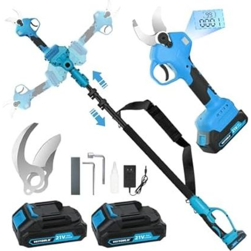 Veitorld Telescopic Lopper, 40 mm Battery Secateurs with Removable Telescopic Pole (130-245 cm), Electric Garden Scissors with Battery 2 x 2000 mAh for Branches, Fruit Tree