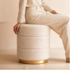 "Riess Ambiente Vogue" apvali taburetė 50 cm Kreminės baltos spalvos bouclé minkšta taburetė su laikymo vieta taburetės sėdynės skrynia