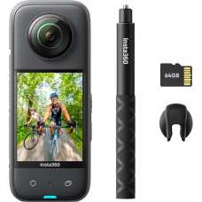 "Insta360 X3 Auf Geht's Bundle" - vandeniui atspari 360° veiksmo kamera su 1/2 colio jutikliu, 5,7K 360°, 72 MP 360° nuotraukomis, stabilizavimu, 2,29 colio jutikliniu ekranu, grįžtamuoju ryšiu nuo vibracijos, dirbtinio intelekto redagavimu, tiesiogine tr