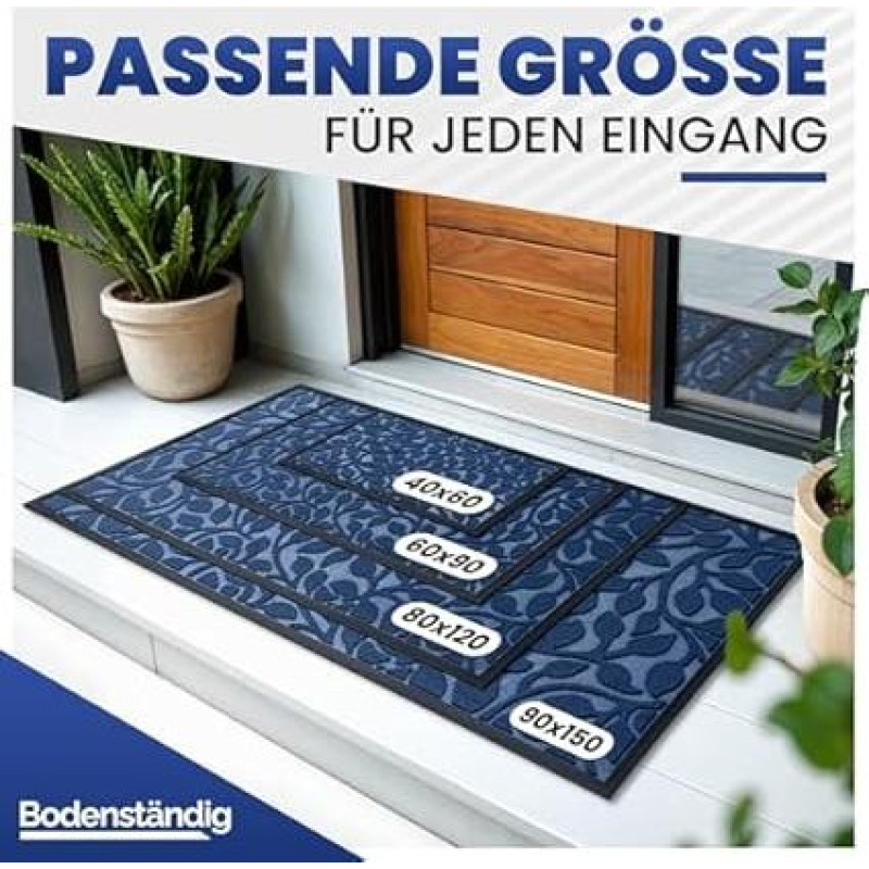 Lauko ir vidaus durų kilimėlis [tvirtas] - švarus batų valymas dėl briaunoto viršaus - puikus dydis 60 x 90 cm mėlyna - durų kilimėlis Lauko durų kilimėlis Priekinių durų gremžtukas Vidaus patalpoms