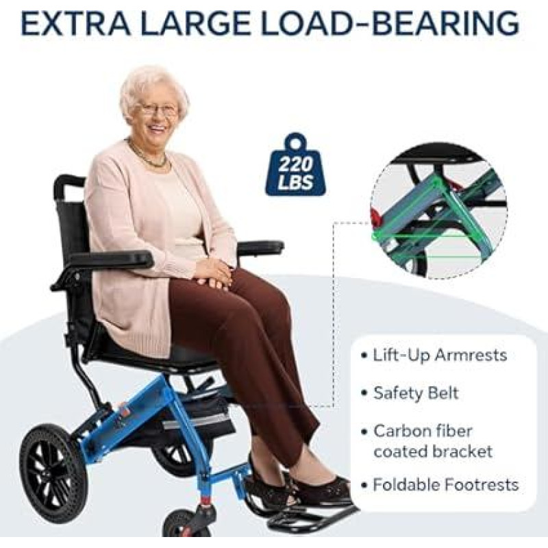 Suaugusiųjų neįgaliųjų vežimėliai Lengvi sulankstomi neįgaliųjų vežimėliai (tik 1 sekundė) Ultralengvas neįgaliųjų vežimėlis su 10 colių "Honeycomb" padangomis (tik 20 svarų, išlaiko 220 svarų)