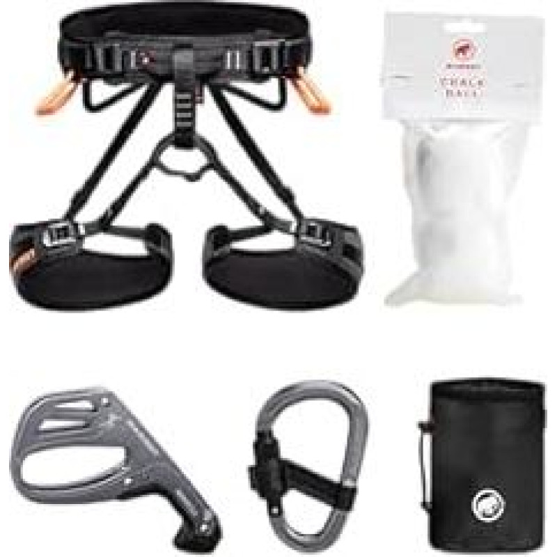 "Mammut Ophir 4 Slide Climbing Package" | Laipiojimo rinkinys, su laipiojimo diržais, karabinu, saugos įtaisu, kreidos krepšiu ir kreidos rutuliukais, įranga laipiojimui, apsauga nuo kritimo, juoda, M-XL