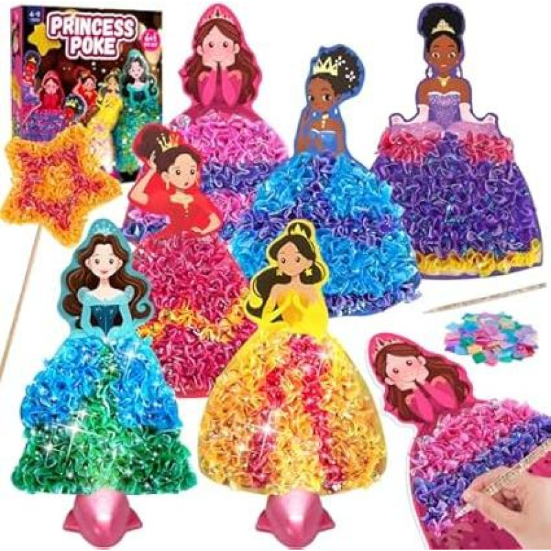 "Poke Art" vaikų amatų rinkinys su LED pagrindu, princesės "pasidaryk pats" kūrybinis rinkinys, amatai be purvo mergaitėms 4 5 6 6 7 8 9, dovana vaikų gimtadieniui, mergaičių žaislas nuo 9 10 11 12 metų