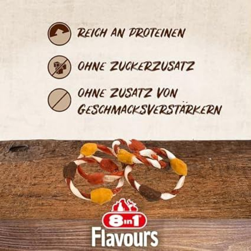 "8in1" trigubo skonio žiedai XS/S užkandžiai šunims - kramtomieji užkandžiai žaidimams ir kramtymui su papildoma mėsa, 80 g maišelis (2 dvigubi žiedai)