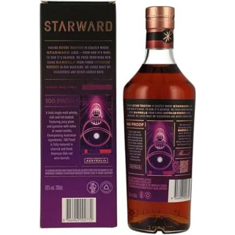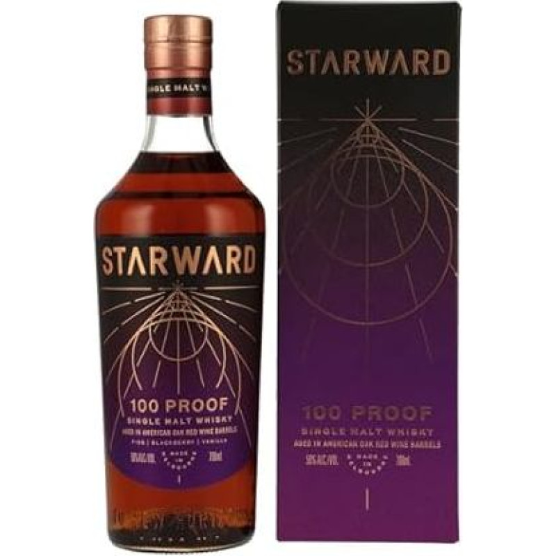 STARWARD 100 Proof Single Malt Whiskey brandintas amerikietiško raudonojo vyno statinėse Iš ąžuolo 50% tūrio 700 ml Nešaltas Filtruotas Sodraus skonio Vanilės ir skrudinto ąžuolo natos