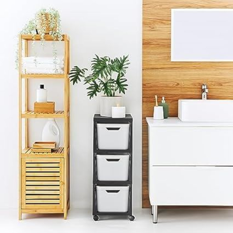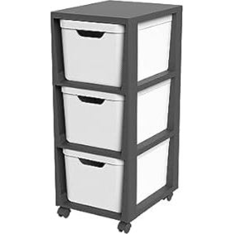 "Jive" riedantis konteineris su stalčiais, vežimėlis ir 3 stalčių dėžės, pagamintas iš plastiko (PP), baltos/šviesiai pilkos spalvos, 3 x 16 l (37,9 x 30,4 x 32,9 cm)