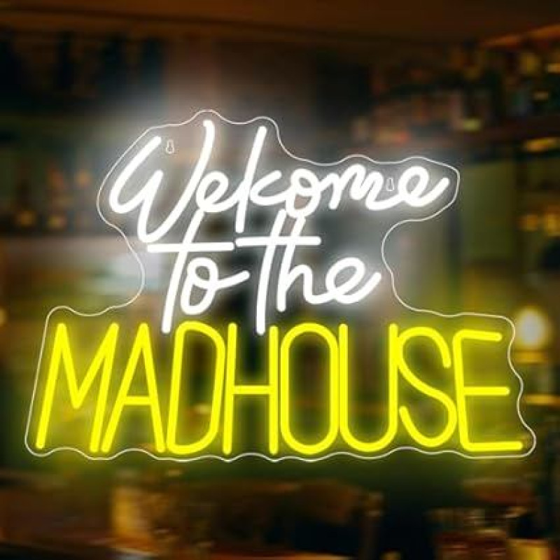 LED neoninis ženklas, LED neoninė šviesa sienoms dekoruoti, akrilo apšviečiamas neoninis ženklas su USB jungtimi, gražus šviesos dekoravimas gyvenamajame kambaryje, gimtadienis, šalis, vestuvės, namai (Sveiki atvykę į beprotnamį)