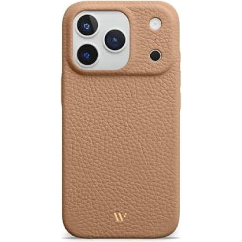 WIIUKA dėklas "iPhone 17 Pro", odinis iš Vokietijos, odinis itin plonas, aukščiausios kokybės dėklas mobiliajam telefonui, Qi, Skiin, rudas kapučino spalvos