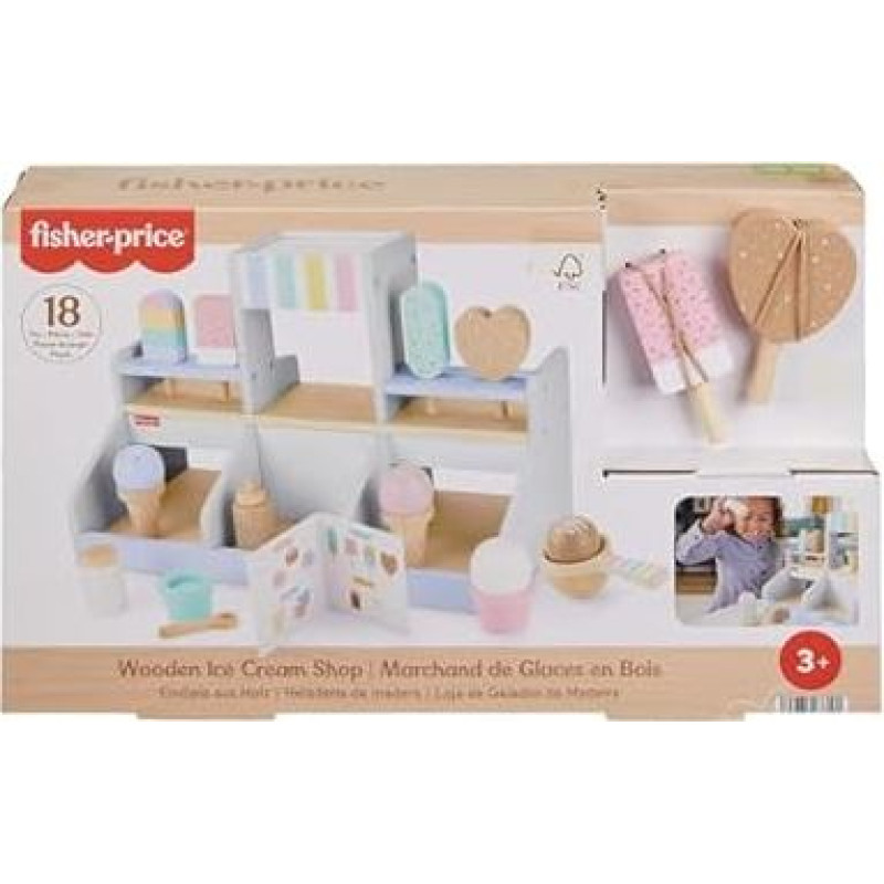 "Fisher-Price" HXV21 Medinis ledų salono žaidimų rinkinys darželinukams 18 medinių detalių vaidmeniniams žaidimams nuo 3 metų