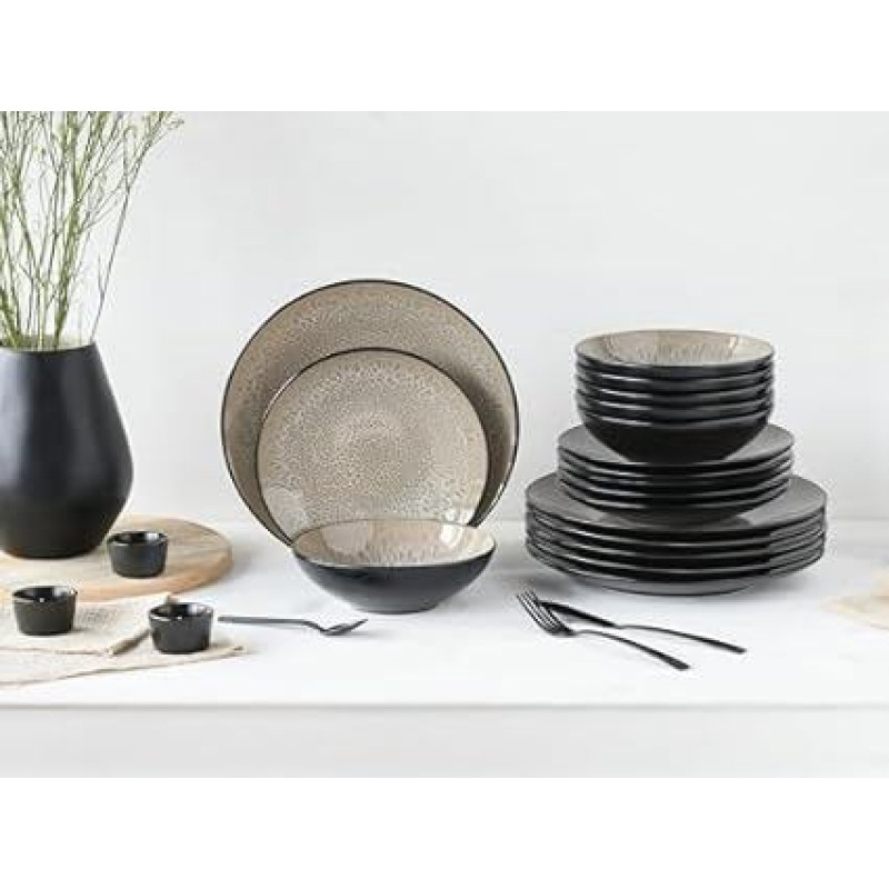 CreaTable, 24464, "Malmö Beige Series", 18 dalių indų rinkinys 6 asmenims, lėkščių rinkinys iš akmens masės, tinkamas plauti indaplovėje ir mikrobangų krosnelėje, kokybiška gamyba