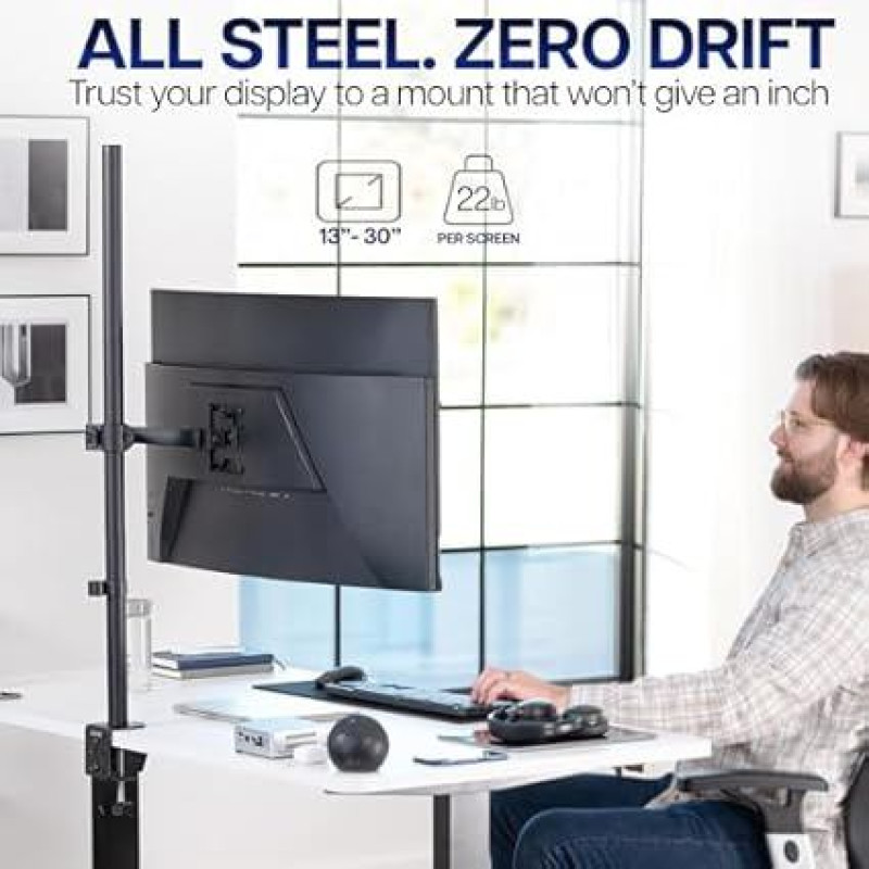"VIVO Stand-V011" monitoriaus laikiklis ant stalo, 39 colių strypas, visiškai reguliuojamas, pakreipiamas ir pasukamas, tinka nuo 13 iki 32 colių ekranams su VESA laikikliu, juodas