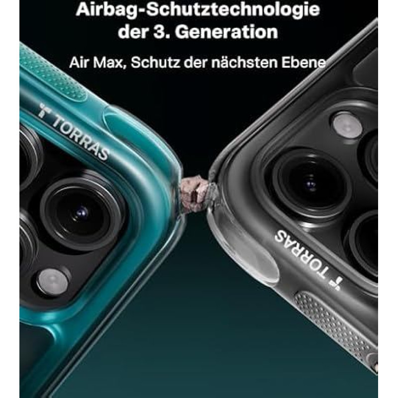 TORRAS "Ostand Q3 Air" dėklas "iPhone 16 Pro Max" su tikra oro pagalve (aukščiausio lygio karinė apsauga) (360° magnetinis tvirtas stovas) Matinis mobiliojo telefono dėklas su fotoaparato valdymo mygtuku, mėlynas