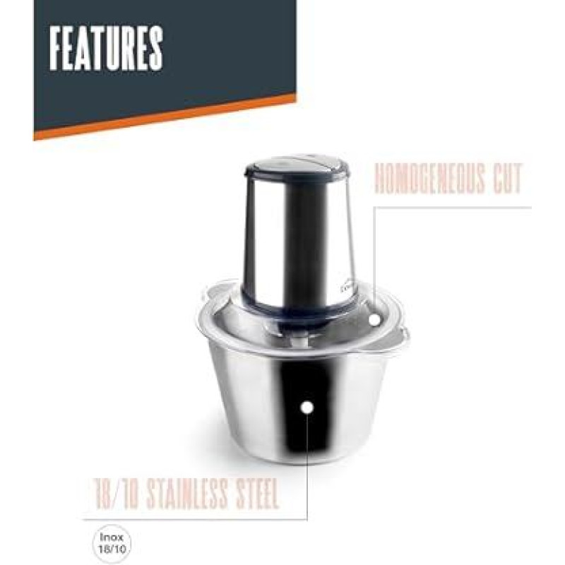 Lacor - 69544 - Elektrinis smulkintuvas iš nerūdijančio plieno, 300 W, 2 greičiai, 4 nuimami peiliai smulkinimui ir pjaustymui, nerūdijantis plienas 18/10, 2 litrai