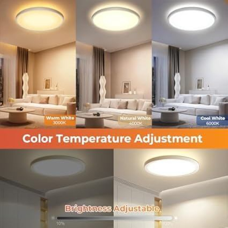 OTREN LED lubų šviestuvas, reguliuojamas, 36 W lubų šviestuvas, RGB spalvų keitimas su nuotolinio valdymo pulteliu, 3240 LM apvalus plokščias šviestuvas vonios kambariui, vaikų kambariui, svetainei, miegamajam, skersmuo 30 cm