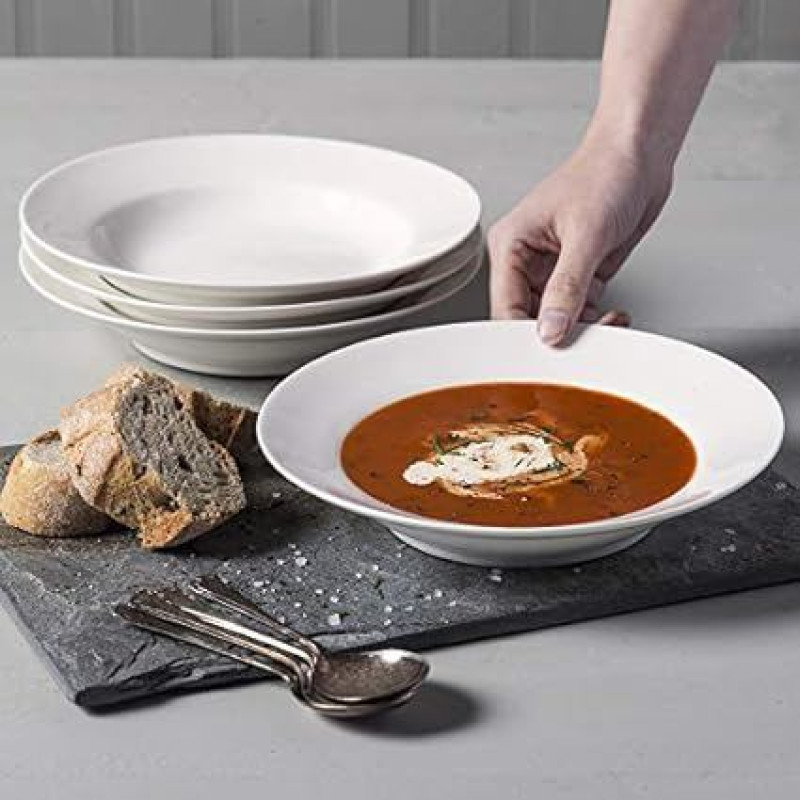 WM Bartleet & Sons 1750 TSET130 Tradicinis 4 atskirų porcelianinių sriubos dubenėlių su kruopomis, ryžiais, makaronais ir salotomis rinkinys 22 cm balto porceliano
