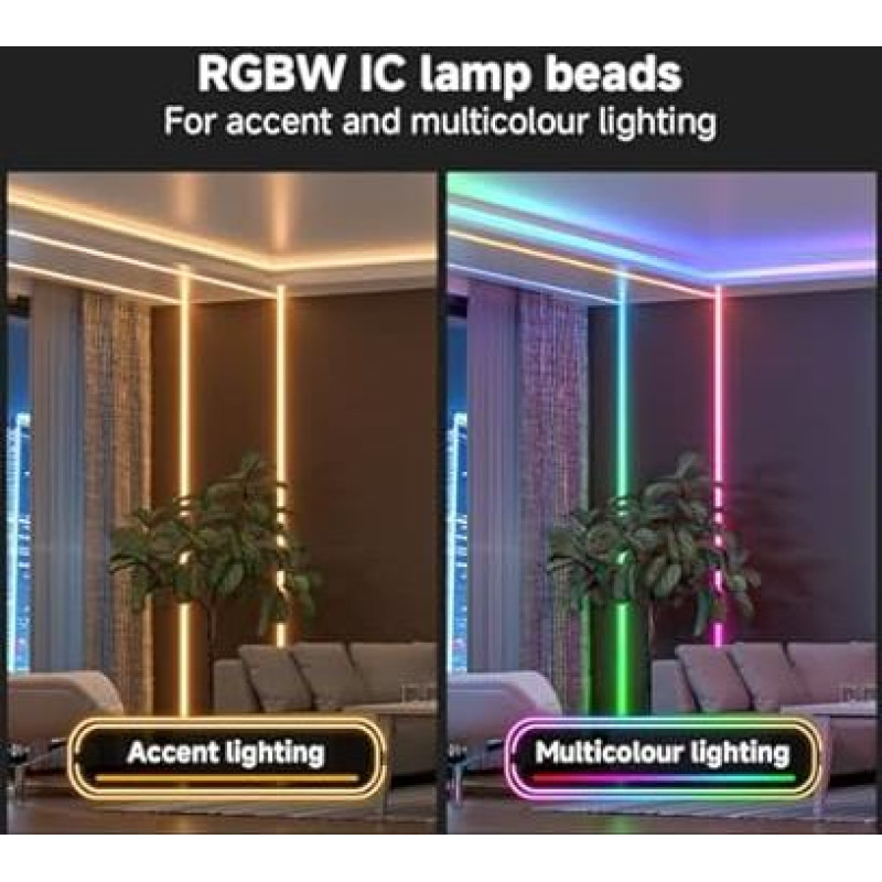 COB SPI RGBNW (4000 K) LED juosta WS2814 IC RGBW adresuojama 5 m 896LEDs/m 24 V 12 mm pločio IP30 Dream Colour Lankstus spalvų sekimas "pasidaryk pats" (be maitinimo šaltinio valdiklio)