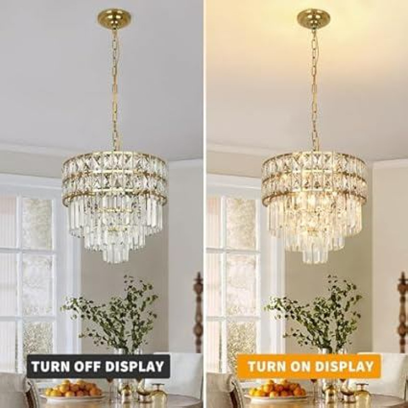 Šiuolaikinis krištolo sietynas Auksinis pakabukas, apvalus krištolo šviestuvas, skirtas valgomajam, restoranui, prieškambariui, balkonui, skersmuo 40 cm