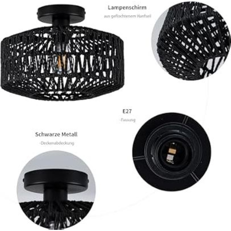 Rattan Deckenlampe 30cm - Boho Vintage Design für Wohnzimmer & Schlafzimmer - Inkl. E27 LED Birne - Gewebter Lampenschirm aus Naturmaterial - Einfache Montage