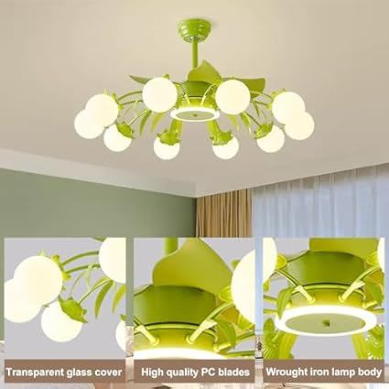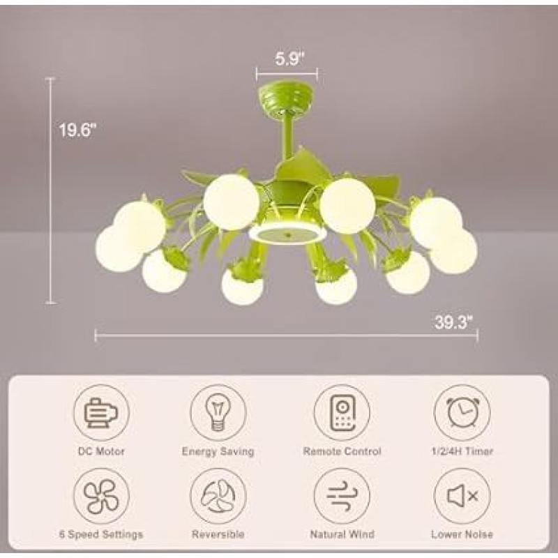 "Depuley" žalias šviestuvas su ventiliatoriumi: 39 colių šviestuvas lubų ventiliatorius su 10 lempučių ir nuotolinio valdymo pulteliu valgomajame gyvenamajame kambaryje - Modem LED ventiliatorius 3 spalvų šviesa - šviestuvas dideliam pagrindiniam kambariu