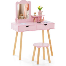 A big surprise for your little one – the chic style and elegant look make this children's dressing table set an aesthetic piece in the children's room. Apart from that, the dressing table set is a great combination of functionality and beauty, making it an ideal gift for your daughter on birthday, holidays or other special days. Triple folding mirror and practical drawer - The children's make-up table comes with a triple folding mirror that can be rotated 180 degrees for clear reflection. This allows children to view their make-up and hairstyle from all directions. The storage drawer makes it easy to place hair bands, cosmetics and decorations. 2 in 1 for different requirements – the removable mirror can meet different requirements. It can be used not only as a dressing table but also as a desk. With a large table top, the dressing table offers children plenty of space for learning or make-up. Durable and stable – Made of high-quality and thick board, the dressing table for children is characterised by great robustness and durability and thus promises a longer service life. In addition, 4 slanted pine wood legs are designed for higher stability and safety. More thoughtful details - Smooth corners and edges eliminate the risk of possible injuries and provide your children with all-round protection. The exquisite knob provides much convenience when inserting and pulling out the drawer. In addition, the dressing table and stool are equipped with non-slip foot pads to avoid scratches on the floor. › See more product details