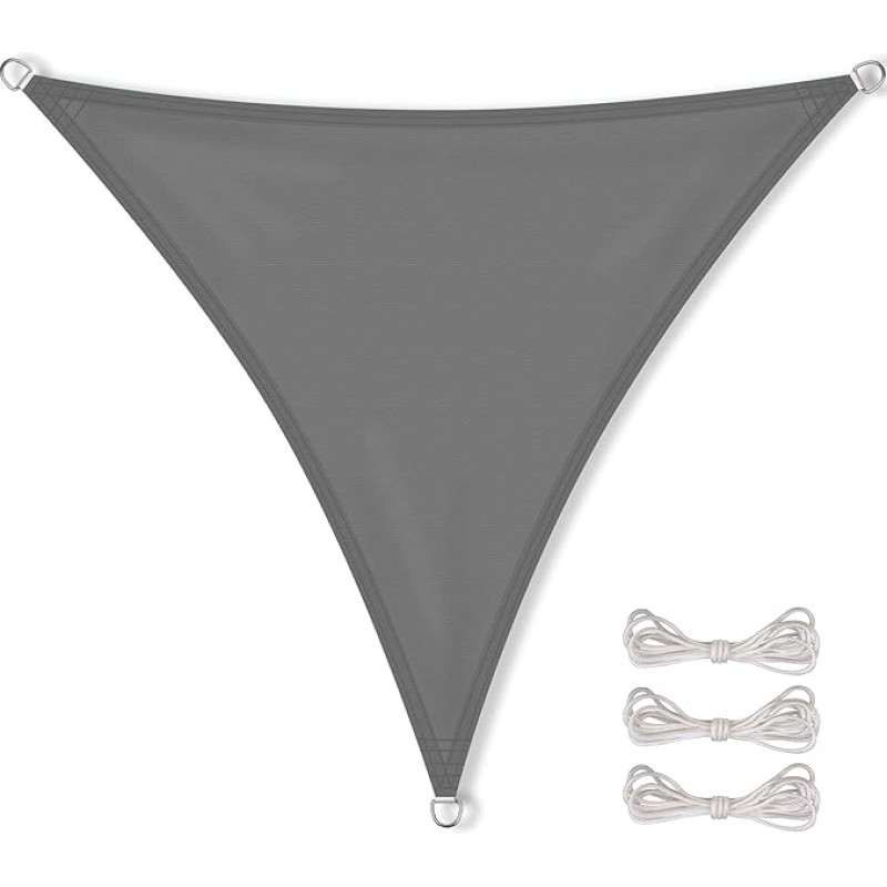 CelinaSun Premium shade sails are easy and quick to install, the concave shape transfers the tension to the outside. Additional stability is provided by the all-round sewn-in strap Excellent protection against aggressive and harmful UV rays, UPF 50+ UV protection certified by the German textile institute Hohenstein. Ultraviolet Protection Factor (UPF) Can be used flexibly e.g. as a shade over your terrace or children's play area. Also ideal as a carport, as a privacy screen in the garden, on the balcony, when camping or by the pool. The sail with a gradient of min. 20-25% to ensure rapid drainage of water and avoid the formation of a water bag. Re-tension each shade sail regularly to create a smooth, tight surface and avoid water accumulation at possible connection seams 1 x sun protection awning, wind and water-repellent (PES), colour: anthracite, triangle on the same side 4 x 4 x 4 m and 4 x attachment ropes (each approx. 1.5 m). 5-fold cross-stitched stainless steel eyelets on the corners Canvas made from 100% tear-resistant and weatherproof polyester fabric (PES), water-repellent polyurethane coating on the bottom, material weight approx. 160 g/m². UPF 50+, highest textile sun protection factor › See more product details