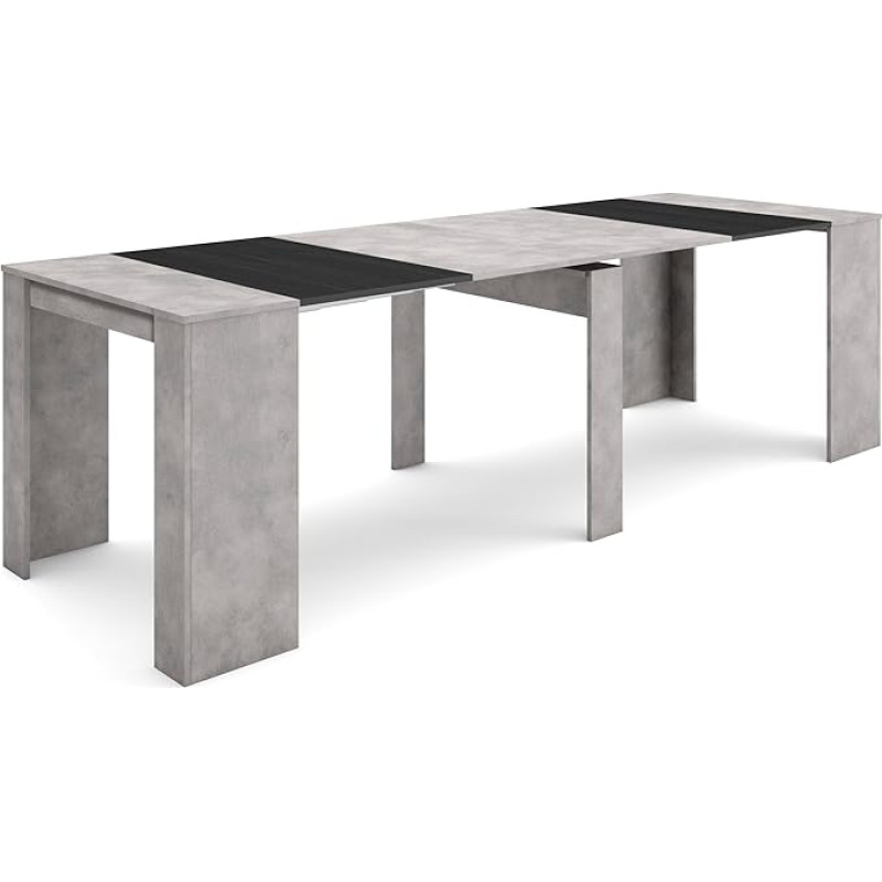 Telescopic aluminium mechanism with central leg that gives stability to the structure. The table has anchoring mechanisms that fix and secure the assembly in any position and prevent unwanted opening. Console in high-quality cement design. The Skraut Home Extendable Console Table is a convenient extendable console and dining table with multiple mounting positions. Wooden extensions in black finish with porous grain and high-quality cement. Closed console table measures 90cm Width x 58 cm. Depth. Variable length: with an extension 109 cm, with 2 extensions 160 cm, with 3 extensions. 211 cm, with 4 spouts. 262 cm. Can accommodate up to 12 people. › See more product details; Product description Product Description Telescopic aluminium mechanism with central leg that gives stability to the structure. The table has anchoring mechanisms that fix and secure the assembly in any position and prevent unwanted opening. Console in high-quality cement design. The Skraut Home Extendable Console Table is a convenient extendable console and dining table with multiple mounting positions. Wooden extensions in black finish with porous grain and high-quality cement. Closed console table measures 90cm Width x 58 cm. Depth. Variable length: with an extension 109 cm, with 2 extensions 160 cm, with 3 extensions. 211 cm, with 4 spouts. 262 cm. Can accommodate up to 12 people. Safety Warning Befolgen Sie immer die Aufbauanleitung. Überschreiten Sie nicht die Gewichtsgrenze von 53 kg. Halten Sie die Finger von beweglichen Teilen fern. Sichern Sie den Tisch in jeder Position, um ein unbeabsichtigtes Öffnen zu verhindern. Bei Beschädigung nicht verwenden.; Product description Product Description Telescopic aluminium mechanism with central leg that gives stability to the structure. The table has anchoring mechanisms that fix and secure the assembly in any position and prevent unwanted opening. Console in high-quality cement design. The Skraut Home Extendable Console Table is a convenient extendable console and dining table with multiple mounting positions. Wooden extensions in black finish with porous grain and high-quality cement. Closed console table measures 90cm Width x 58 cm. Depth. Variable length: with an extension 109 cm, with 2 extensions 160 cm, with 3 extensions. 211 cm, with 4 spouts. 262 cm. Can accommodate up to 12 people. Safety Warning Befolgen Sie immer die Aufbauanleitung. Überschreiten Sie nicht die Gewichtsgrenze von 53 kg. Halten Sie die Finger von beweglichen Teilen fern. Sichern Sie den Tisch in jeder Position, um ein unbeabsichtigtes Öffnen zu verhindern. Bei Beschädigung nicht verwenden.; Product Description Telescopic aluminium mechanism with central leg that gives stability to the structure. The table has anchoring mechanisms that fix and secure the assembly in any position and prevent unwanted opening. Console in high-quality cement design. The Skraut Home Extendable Console Table is a convenient extendable console and dining table with multiple mounting positions. Wooden extensions in black finish with porous grain and high-quality cement. Closed console table measures 90cm Width x 58 cm. Depth. Variable length: with an extension 109 cm, with 2 extensions 160 cm, with 3 extensions. 211 cm, with 4 spouts. 262 cm. Can accommodate up to 12 people. Safety Warning Befolgen Sie immer die Aufbauanleitung. Überschreiten Sie nicht die Gewichtsgrenze von 53 kg. Halten Sie die Finger von beweglichen Teilen fern. Sichern Sie den Tisch in jeder Position, um ein unbeabsichtigtes Öffnen zu verhindern. Bei Beschädigung nicht verwenden.