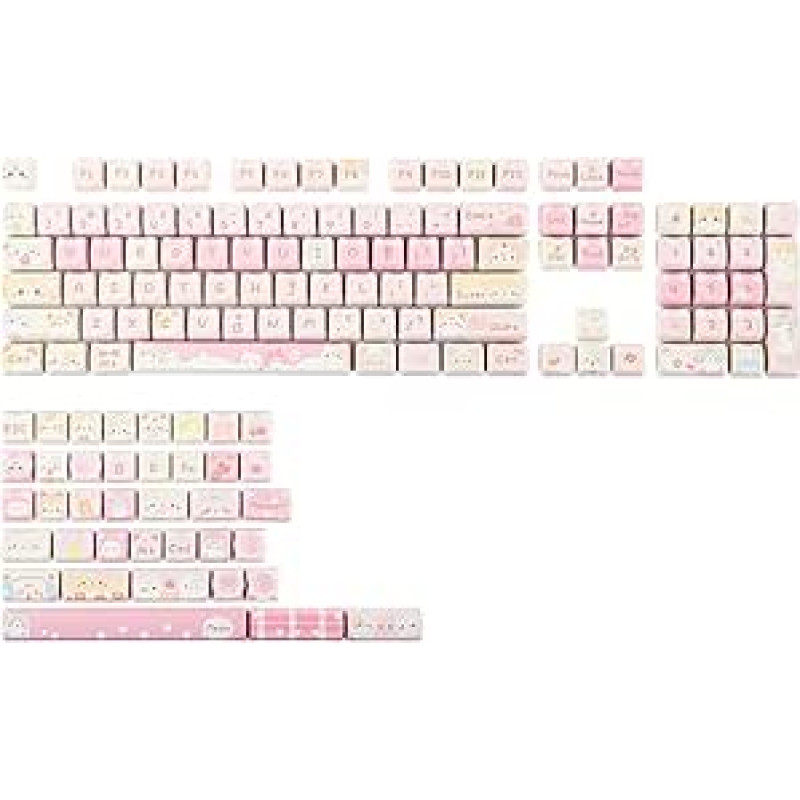 "KiiBoom Cute Cat" klavišų dangtelių rinkinys, "Mao" profilis, PBT/PC klavišų dangteliai, skirti MX Switch mechaninėms klaviatūroms, suderinami su 60 %, 65 %, 75 %, 75 %, TKL, 96 %, pilno dydžio išdėstymas (Meow Squad)
