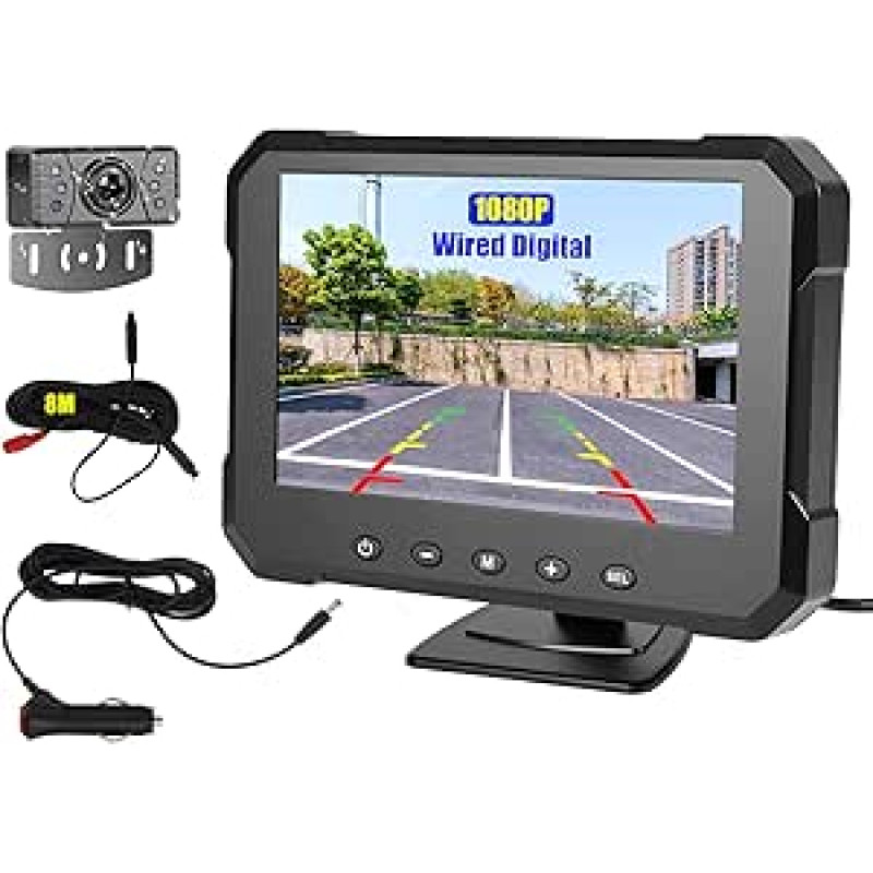 "OiLiehu" laidinės atbulinės eigos kamerų sistemos rinkinys, HD 1080P 5 colių monitoriaus infraraudonųjų spindulių su naktinio matymo atbulinės eigos kamera IP68 atspari vandeniui su 26,2 pėdų kabeliu, atbulinės eigos kamera su atbulinės eigos pagalbos li