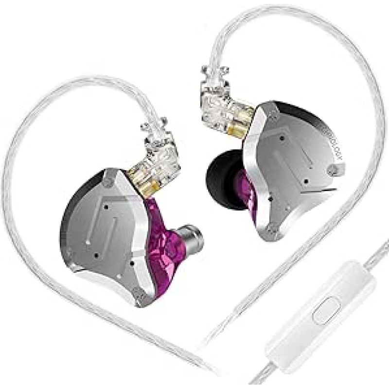 "KZ ZS10 Pro In-Ear Monitor" ausinės, 4 subalansuoti diskiniai garsiakalbiai ir 1 dinaminis garsiakalbis (4BA ir 1DD), hibridinės KZ ausinės (violetinės spalvos su mikrofonu)