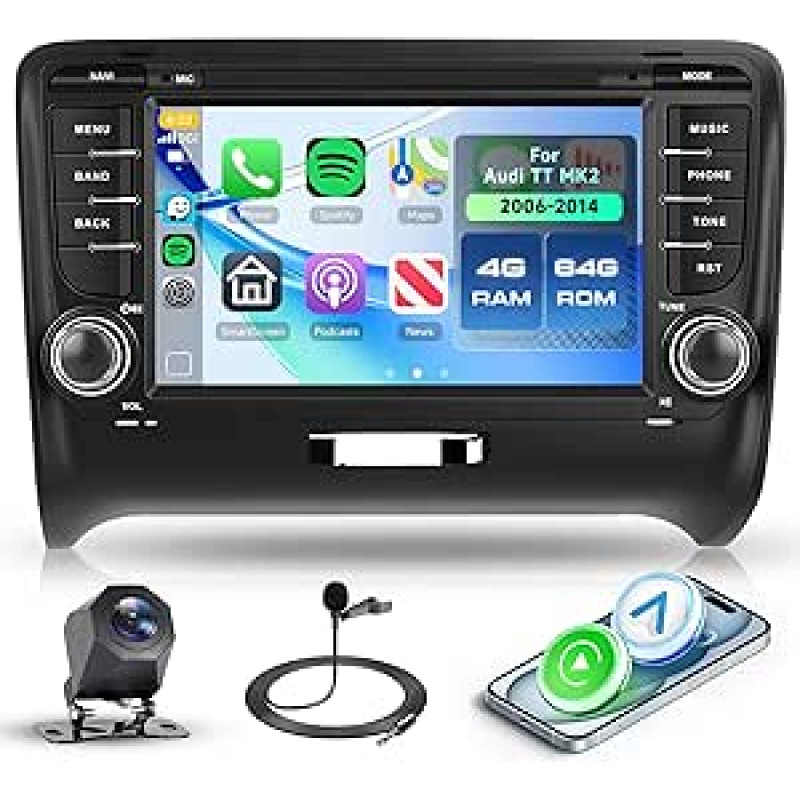 "Rimoody" 4G + 64G "Android" automobilinis radijas "Audi TT MK2" 2006-2014, 7 colių radijas su belaidžiu "Carplay" "Android" automobiline navigacija GPS FM/RDS/EQ/USB/WiFi Mirror Link Bluetooth vairo valdymas atbuline eiga