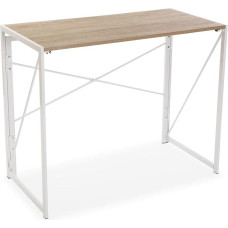 ODK mažas rašomasis stalas su 4 stalčiais, 100 x 48 x 75,7 cm, kompiuterio stalas, apverčiamas biuro stalas su ausinių laikikliu, kompiuterio stalas, medinis, skirtas namų biurui, baltos spalvos