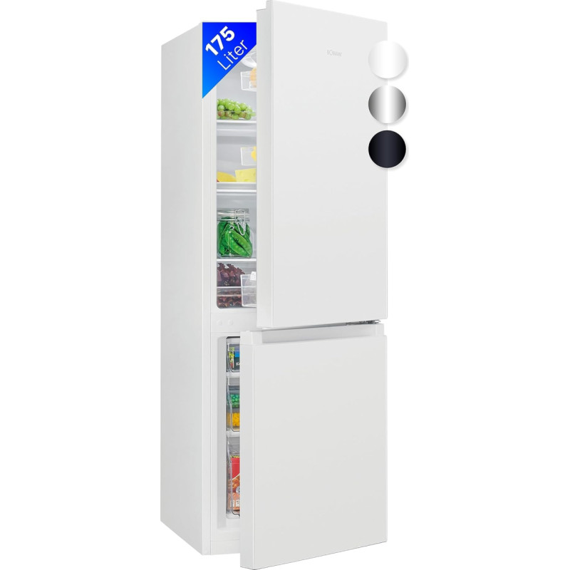 Generous storage space – with a total volume of 175 litres (divided into 122 L refrigerators and 53 L freezer), 3 shelves and 3 drawers and a transparent vegetable tray, the Bomann free-standing fridge freezer offers enough space for your food and allows efficient organisation Flexible adjustment options: the 3 glass shelves (2 x height adjustable) and 3 door shelves of the fridge-freezer combination allow you to customise the interior according to your needs Precise cooling: thanks to the continuous temperature control in the range from 0 °C to +8 °C, your food always stays optimally cooled. The LED interior lighting of the free-standing fridge freezer ensures a good overview Reliable freezing performance: With the 4-star marking and a temperature range of ≤ -18°C, the freezer area of the refrigerator offers reliable freezing performance. The 3 freezer drawers and ice cube tray allow for easy use Energy efficient and stylish - Choose from three elegant colours to perfectly showcase your kitchen: white, stainless steel and glossy black. In addition, the refrigerator is characterised by a low energy consumption of 125 kWh per year › See more product details