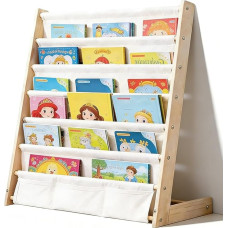 Generous double-sided storage space - order made easy: this wooden children's bookcase offers plenty of space for books and toys with 4 large front compartments on both sides. Perfect as a bookcase children's room or toy shelf to keep the children's room shelf tidy SAFE, DURABLE & CHILD SAFE: Made of smooth, durable wood with rounded edges and non-toxic protective layer. The tear-resistant canvas bags make this Montessori shelf ideal for everyday use of small children's hands Lightweight and portable with practical handle: thanks to the integrated handle, the children's shelf can be easily carried from one room to another - whether in the children's room, nursery or playroom. This makes cleaning up easy Quick to assemble and easy to clean: all tools are included for quick assembly. The removable canvas bags make the wooden bookcase particularly easy to clean and hygienic for the children's room Montessori friendly and ideal gift: the child-friendly design promotes independent reading and learning - perfect as a Montessori bookcase or children's room furniture. A thoughtful gift for children, nursery or preschool › See more product details