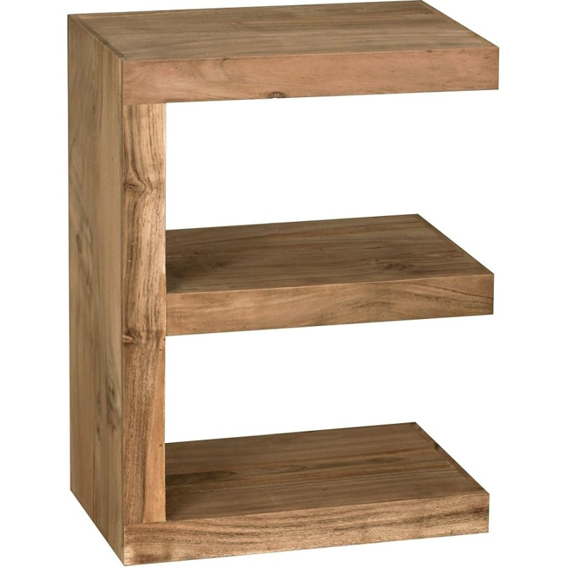 "FineBuy" šoninis staliukas iš medžio masyvo "E Cube" 60 cm aukščio svetainės stalo dizainas Rudos spalvos kaimo namų kavos staliukas Pasirinktos spalvos smėlio spalvos