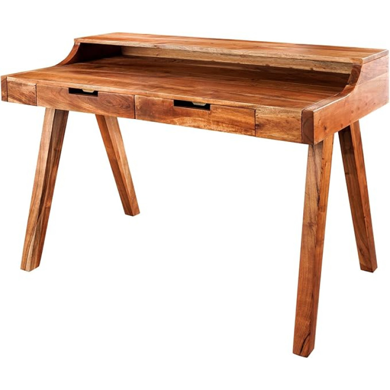 "Riess Ambiente Monsoon Solid Secretary" 100 cm natūralaus akacijos medžio stalčių stalas Darbo stalas Darbo stalas iš medžio masyvo