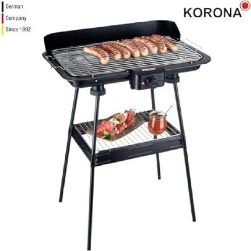 Korona 46221 Elektrinis stovintis grilis su XXL kepimo grotelėmis (51 x 30 cm) | 2200 W | Apsauga nuo vėjo | Indikatorinė lemputė | Saugos jungiklis | Nuolatinis temperatūros nustatymas