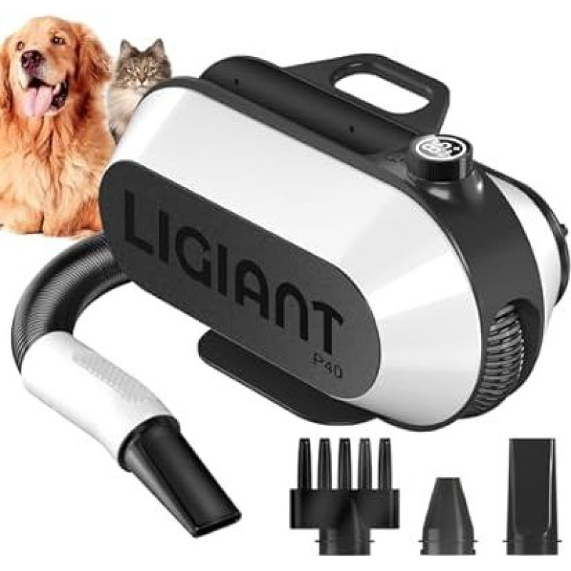 Šunų plaukų džiovintuvas P40, itin tylus (40 dB Cat režimas), "3-in-1" antgaliai, reguliuojamas greitis ir temperatūra, neigiamų jonų technologija, nešiojamas ir universalus laikiklis šunims ir katėms