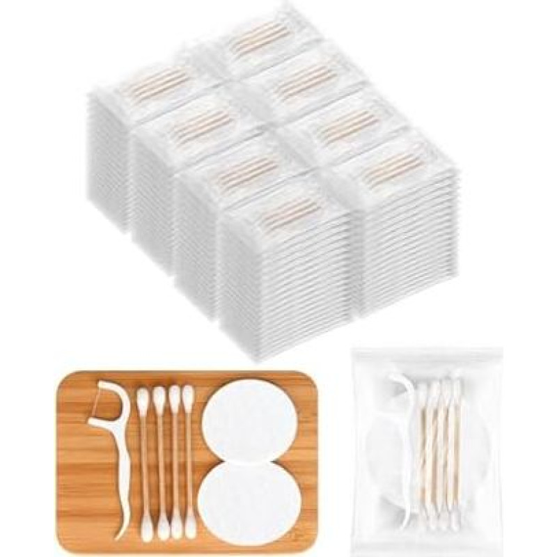 Viešbučio tualeto reikmenų rinkinys, tualeto reikmenų rinkiniai, didmeninė individuali pakuotė, viešbučio tualeto reikmenų rinkinys su medvilniniais tamponais, medvilniniais pagaliukais, dantų siūlu, tinka kelionėms, viešbučiui ir namams (pakuotė po 200 v