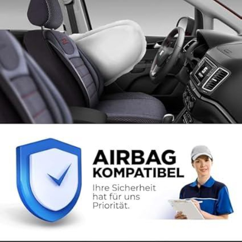 Universalūs automobilių sėdynių užvalkalai lengviesiems automobiliams ir visureigiams - "Premium" priekinių sėdynių užvalkalas, pagamintas iš austo audinio, juodas/raudonas, su oro pagalvėmis suderinamas sėdynių užvalkalas, automobilio sėdynių užvalkalas,