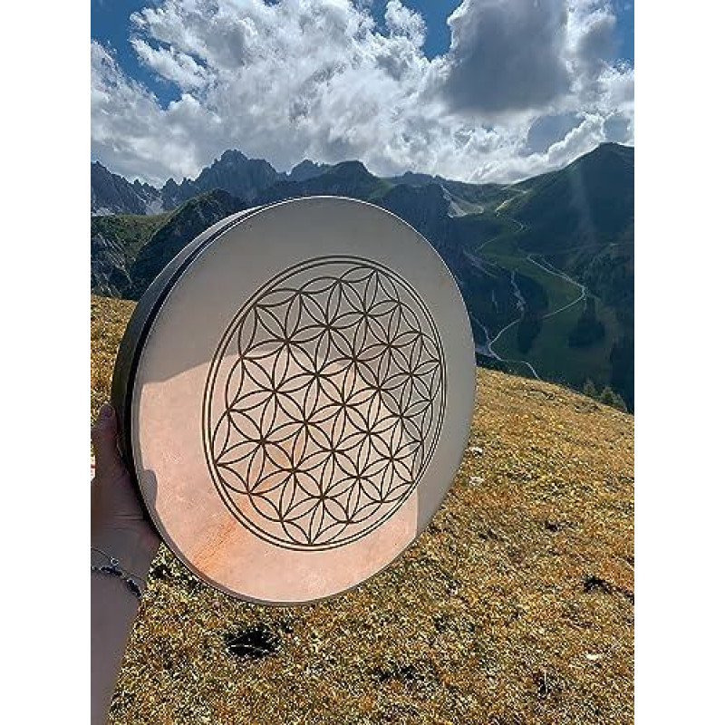 "Sonic Energy Flower of Life" rankinis būgnas - 16 colių - šamaniškas rėminis būgnas su ožkos oda - skirtas meditacijai, garso kelionėms, perkusijai (HD16WB-FOL)