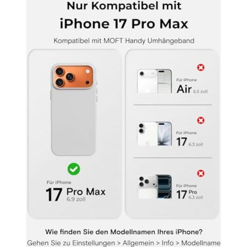"MOFT MOVAS" veganinės odos dėklas "iPhone 17 Pro Max", magnetinis dėklas, minkštas lietimui jautrus, išlaiko spalvą, atsparus dėmėms, lengvai valomas, "Misty Bay