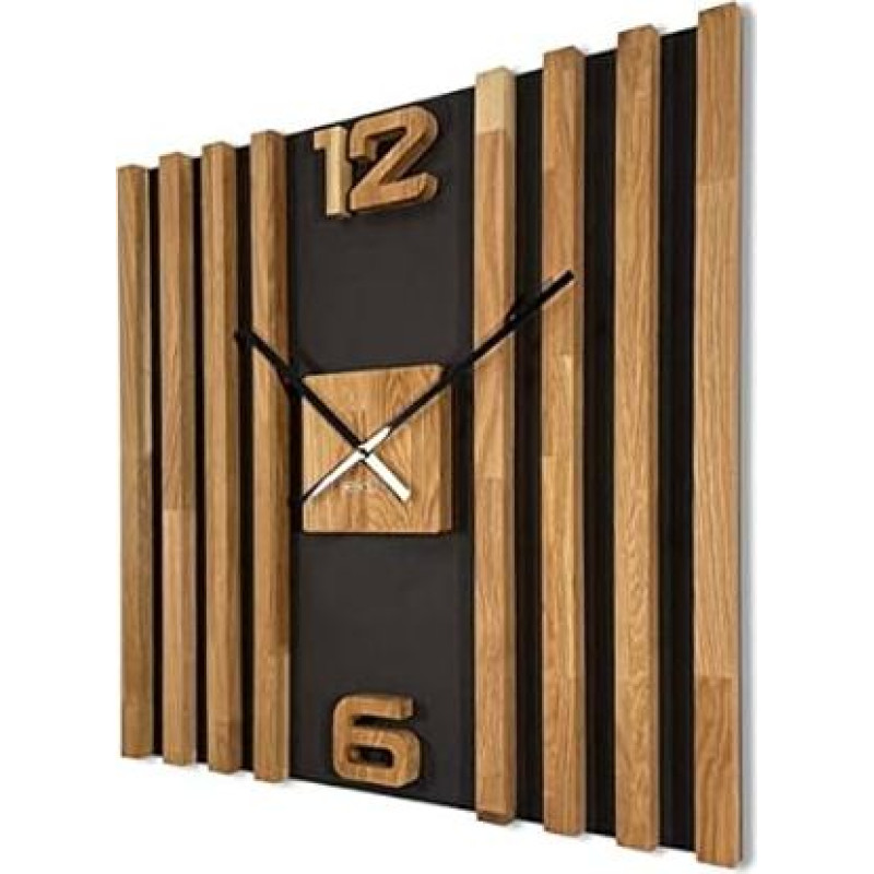 FLEXISTYLE z233-d(1)-1-x 60 Didelis sieninis laikrodis Mediniai skersiniai SQ 60 cm Medienos išvaizda Juoda 3D Ąžuolas Modernus be tiksėjimo Gyvenamasis kambarys