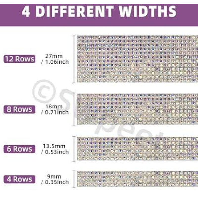 Swpeet Crystal Rhinestone juostelė, Crystal Self Adhesive Rhinestone, dekoratyvinės juostos juostos diržo lipdukas meno amatų DIY automobilių apdaila (AB) 4 ritiniai 4 dydžiai AB spalvos lipnios juostelės