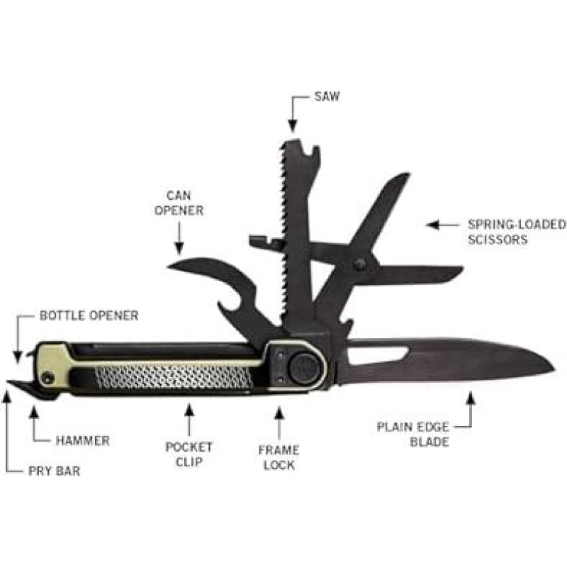Gerber ArmBar Scout kišeninis peilis su 7 funkcijomis, daugiafunkcinis peilis su lygia geležte, žirklėmis ir pjūkleliu, juodas/žalias, nerūdijantis plienas/aliuminis, 1064404